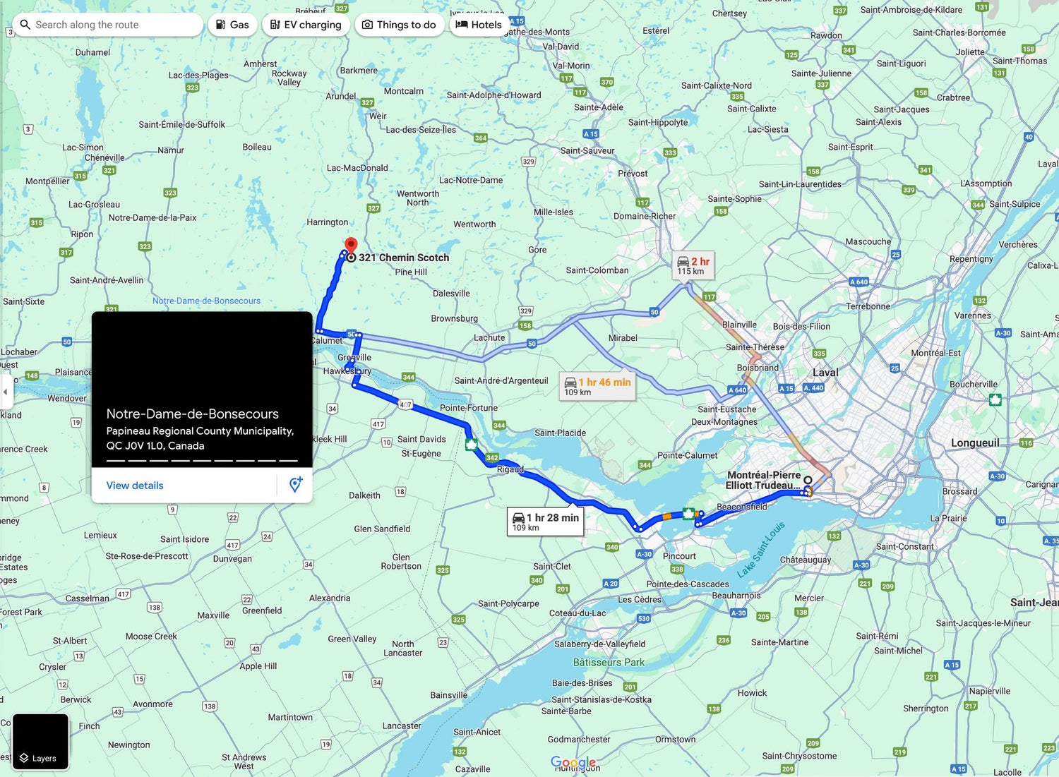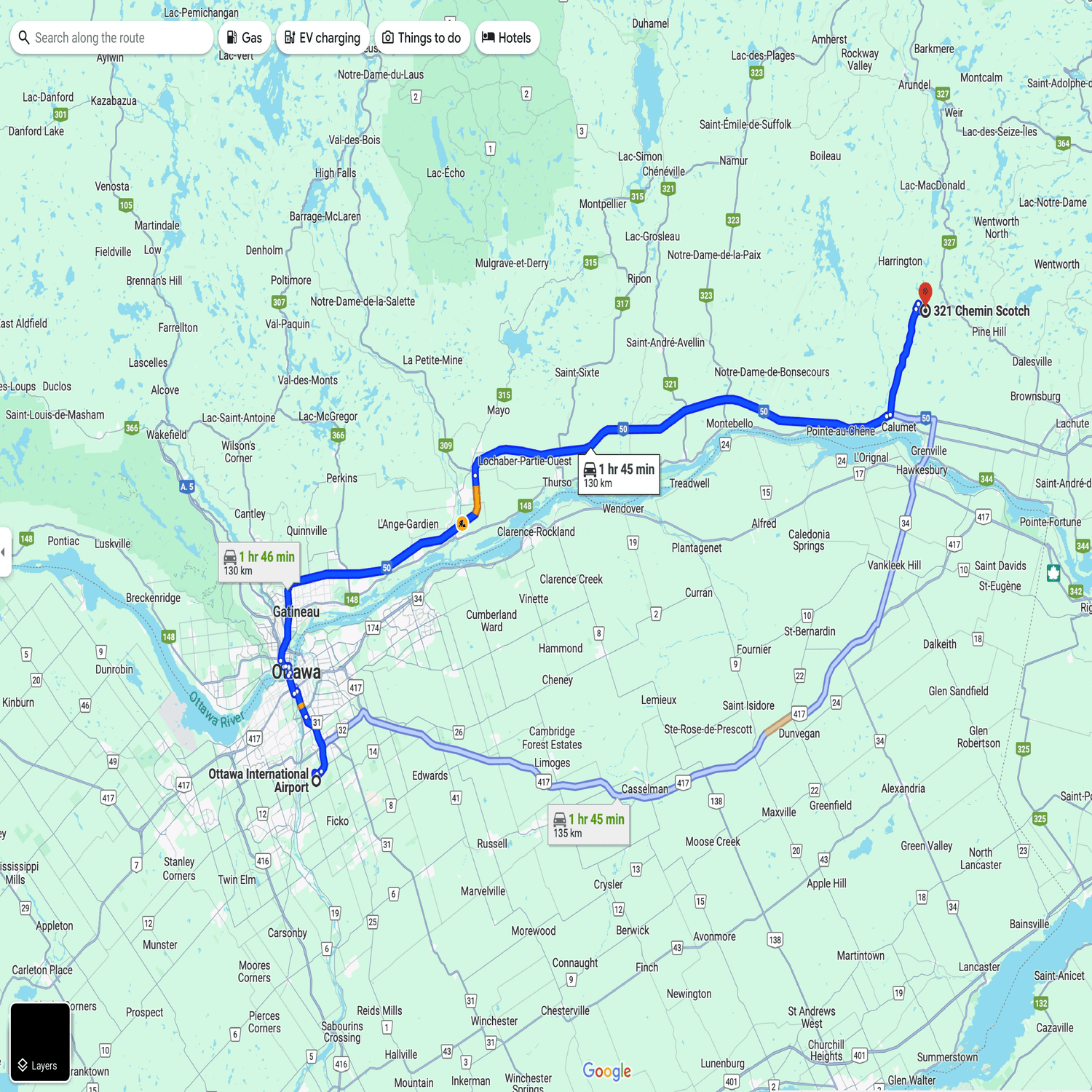 Between Quebec and Ontario, very close to Montreal and Ottawa.